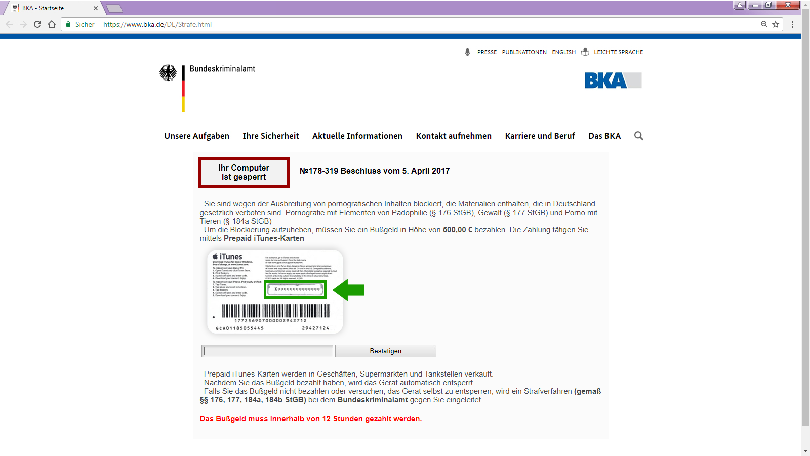 BKA (Bundeskriminalamt) warnt vor Fake-Seiten.