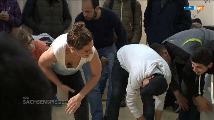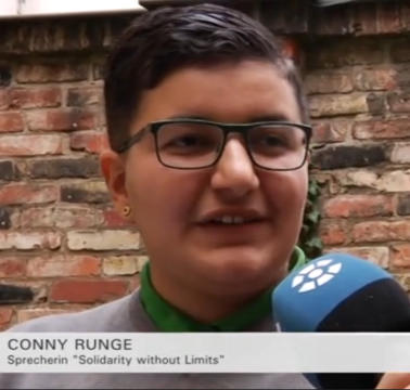 Grundgesetz) der Sicht entzogen. Nun durch die Bevölkerung (zwei Syrer)