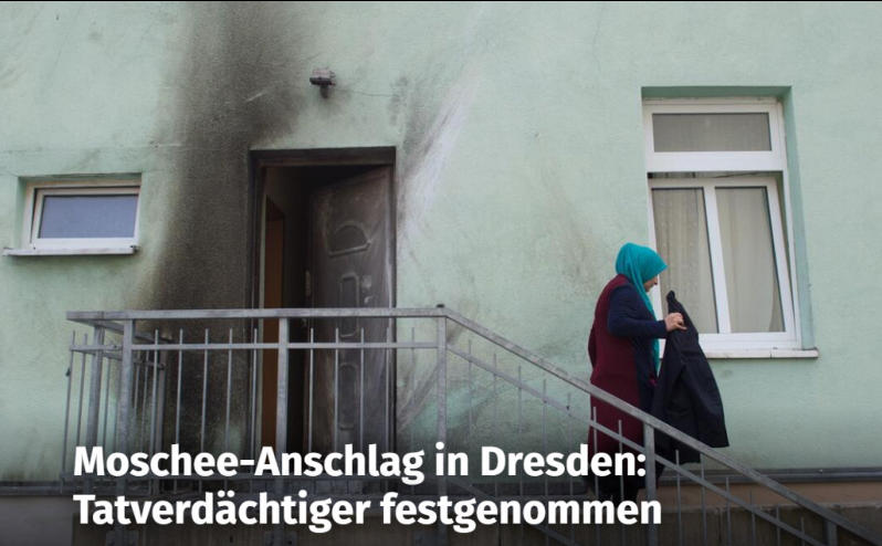 Grundgesetz) der Sicht entzogen. Nun durch die Bevölkerung (zwei Syrer) verhaftet