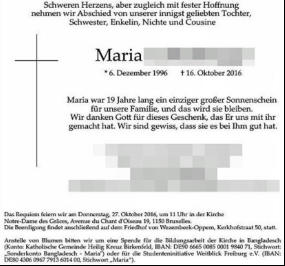 ermordet wurde. Sie besuchte mit dem Moped